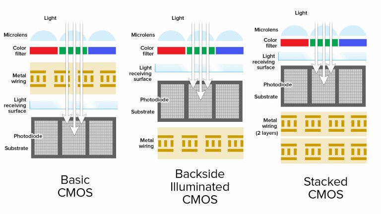 מלבד הBSI בחיישן מוערם יש שכבה נוספת המיועדת לעיבוד הנתונים ומאפשרת יכולת קריאה מהירה משמעותית.